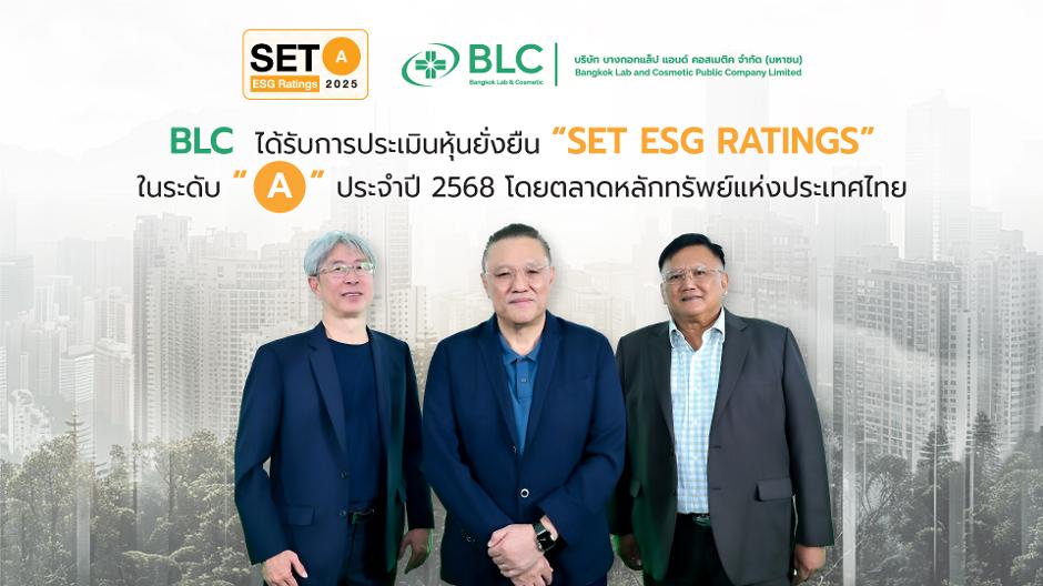 บมจ. บางกอกแล็ป แอนด์ คอสเมติค หรือ BLC’ เดินหน้าตอกย้ำความแข็งแกร่งในฐานะหุ้นเมกะเทรนด์ด้านสุขภาพ (Healthcare) ชั้นนำของไทย ประกาศความสำเร็จต่อเนื่องด้วยการได้รับคัดเลือกให้อยู่ในรายชื่อหุ้นยั่งยืน SET ESG Ratings ประจำปี 2568 ที่ระดับ “A”