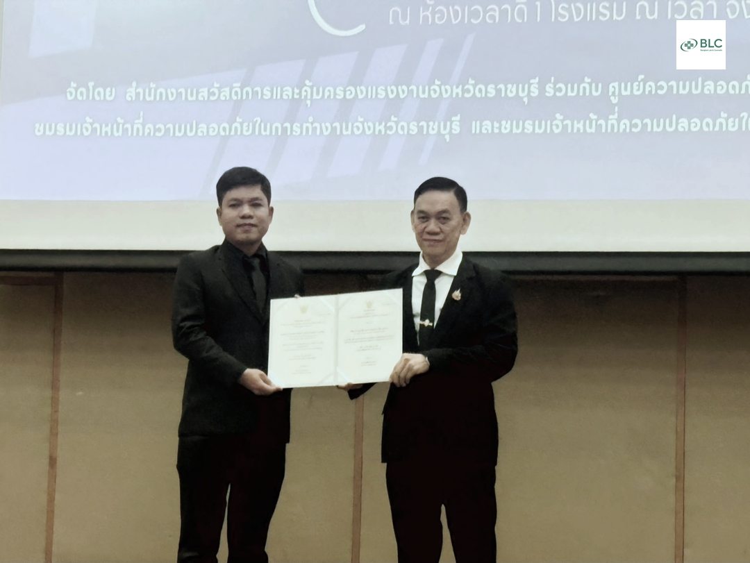 เมื่อวันที่ 20 พฤศจิกายน 2568 บริษัท บางกอกแล็ป แอนด์ คอสเมติค จำกัด(มหาชน) ได้รับเชิญเข้าร่วมพิธีเปิดโครงการพัฒนาศักยภาพและเสริมสร้างความเข้มแข็งแก่คณะกรรมการสวัสดิการในสถานประกอบกิจการ จังหวัดราชบุรี และวันเจ้าหน้าที่ความปลอดภัยในการทำงานครบรอบ 40 ปี(ภาคตะวันตก) ณ ห้องเวลาดี โรงแรม ณ เวลา ราชบุรี ซึ่งในปีนี้ บริษัท บางกอกแล็ป แอนด์ คอสเมติค จำกัด(มหาชน) ได้รับรางวัล สถานประกอบกิจการที่ได้รับการรับรองมาตรฐานการป้องกันและแก้ไขปัญหายาเสพติดในสถานประกอบการ(มยส.) ประจำปี 2568 โดยได้รับเกียรติจาก นา...